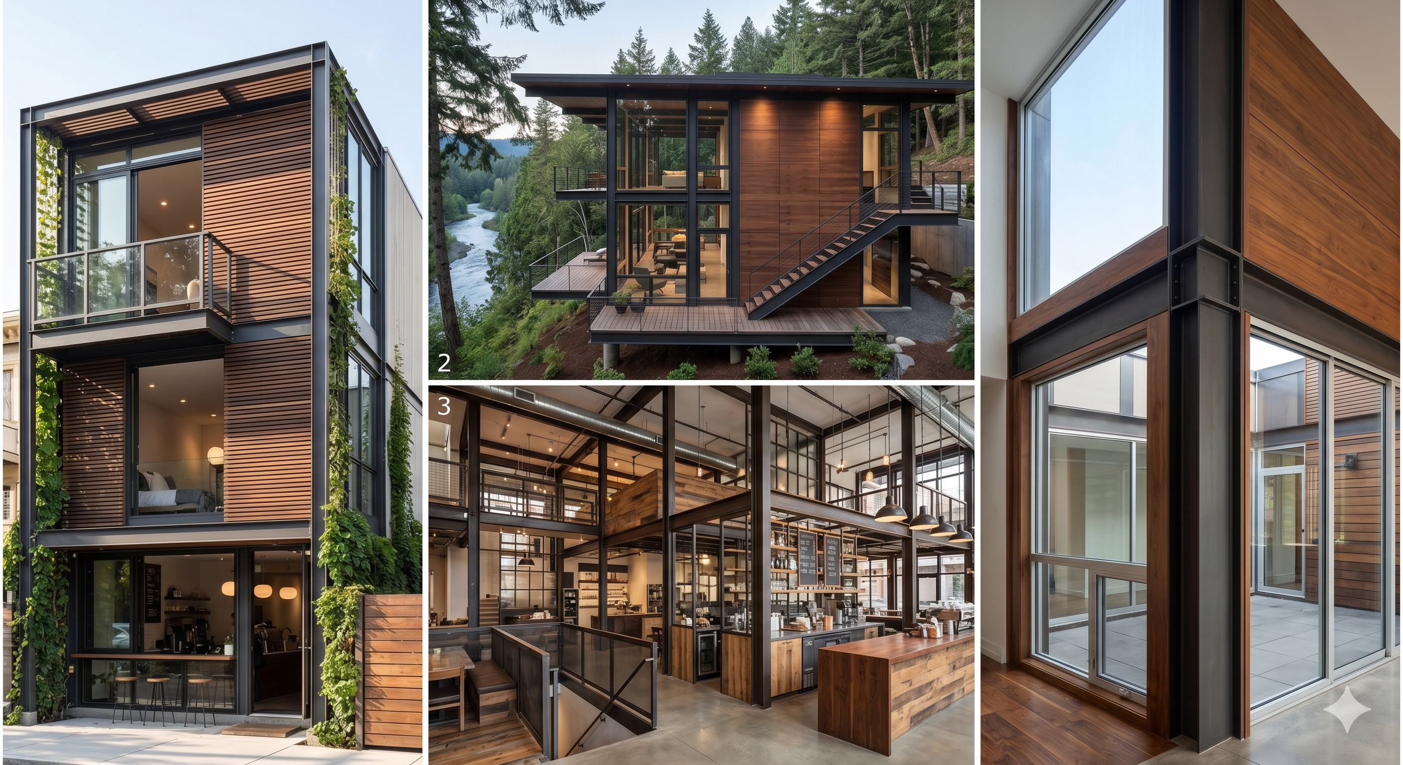 Sự giao thoa vật liệu: Thép, Kính và Gỗ